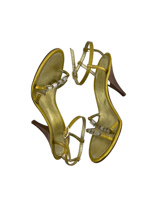 Sold outChanel Beaded Metallic Gold Heels