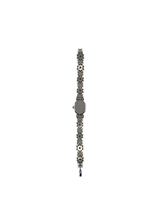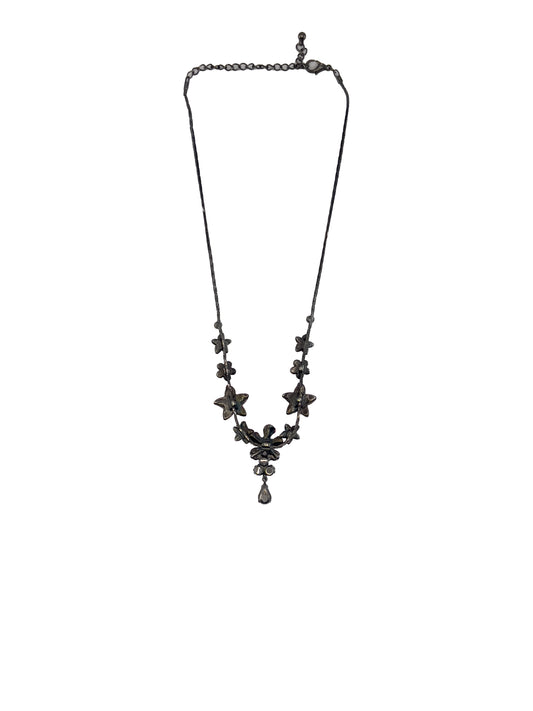 Pink Flowers Rhinestone Gunmetal Choker